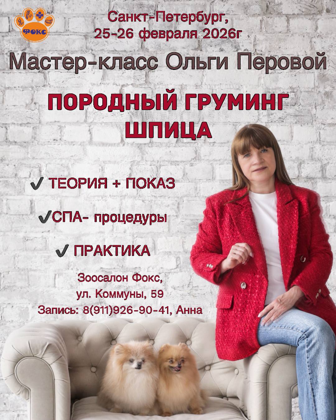 🏢Адрес проведения: СПб, ул. Коммуны, 59, Зоосалон ФОКС
